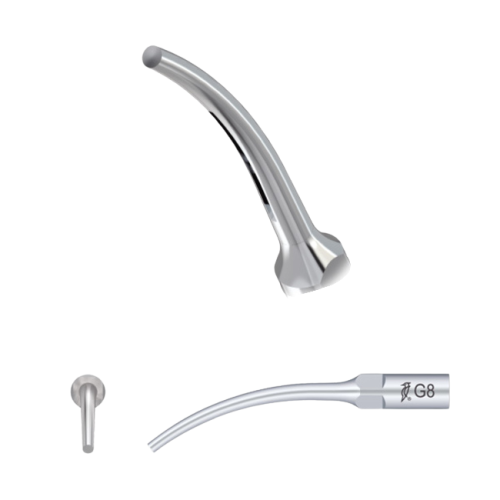 Насадка на скалер G8 применяется для удаления всех видов зубного камня. Этот инструмент может применяться для удаления штифтов и других сложных деталей зубных протезов. Он отличается высокой эффективностью и безопасностью использования.